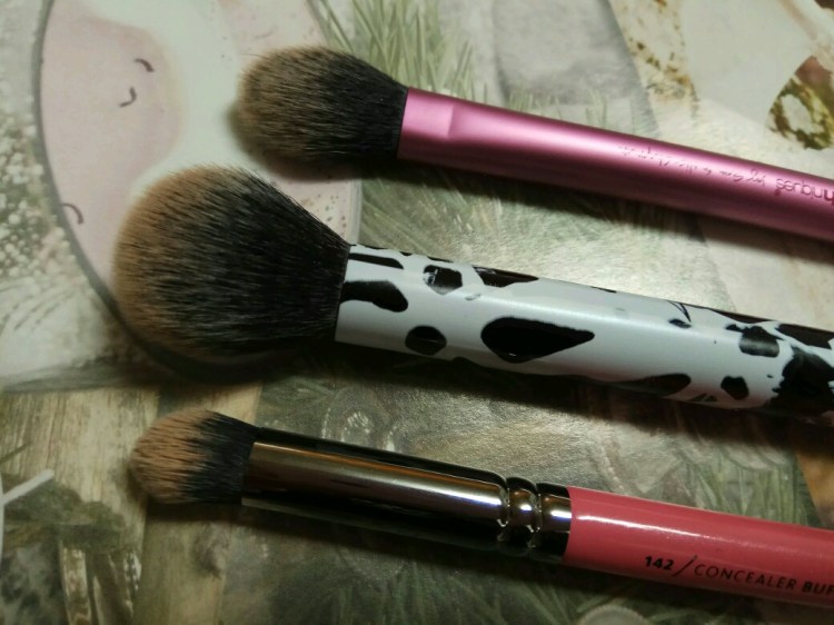 Brocha de Real Techniques sucia de producto polvo y brocha de Zoeva sucia de producto graso más concretamente, corrector.